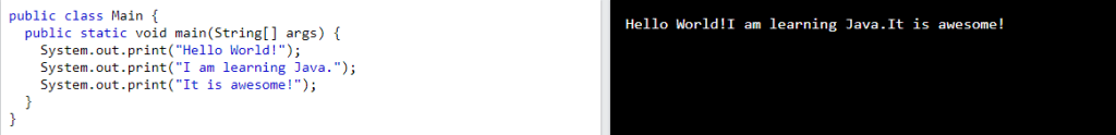 Sama seperti println, yang membedakan hanya tidak menggunakan enter di akhir kalimat.